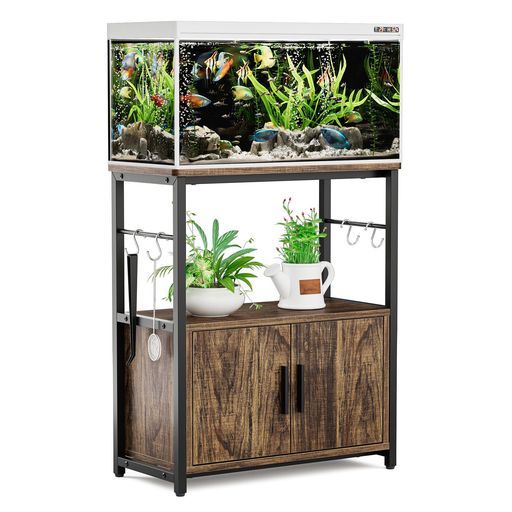 【幅広い用途】➤幅60cmx奥行30cmの天板付き、上段には水槽、中段には鉢植えや小型水槽を収納できます。下段のロッカーには、魚の餌や網、水槽ブラシ、水槽用ランプなどを収納できます。ロッカーには扉も付いているので、ホコリを防ぐこともできます。