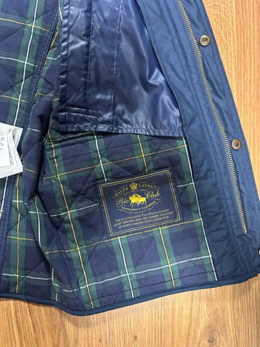 ネイビー カラーのポロ キルティング ベストです。シャツやTシャツの上にレイヤードして着るのが良いです。肌寒い 天気に軽く羽織るのに良い アイテムです。首 쪽 ストラップ、後ろ サイド アジャスター、ベンツ など の ディテール が 含まれています。