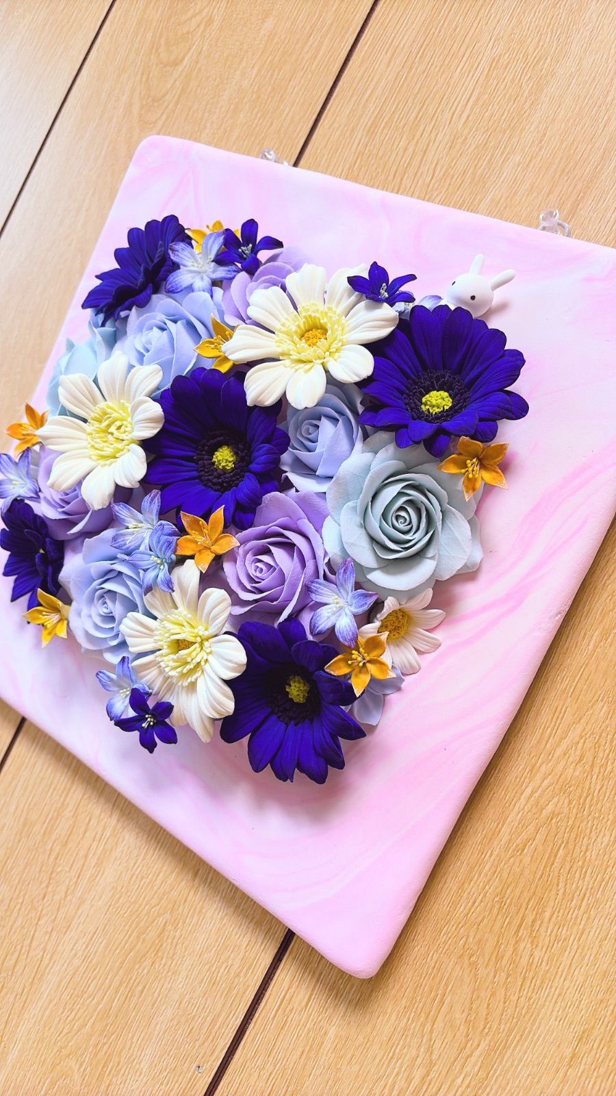 クレイフラワー 青いガーベラの壁掛けアレンジ