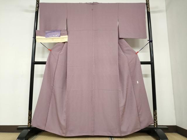 平和屋着物 本加賀友禅作家 由水煌人監修 色無地 加賀紅梅染 枝葉地紋 鳩羽鼠色 証紙付き 正絹 ud