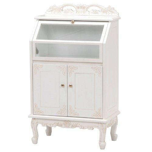 (約)幅60×奥行35×高さ101cm 主材:パイン、MDF エレガントな彫刻とねこ脚、引き出しの上はガラス張りで見せる収納ができるアンティーク風ガラスキャビネット