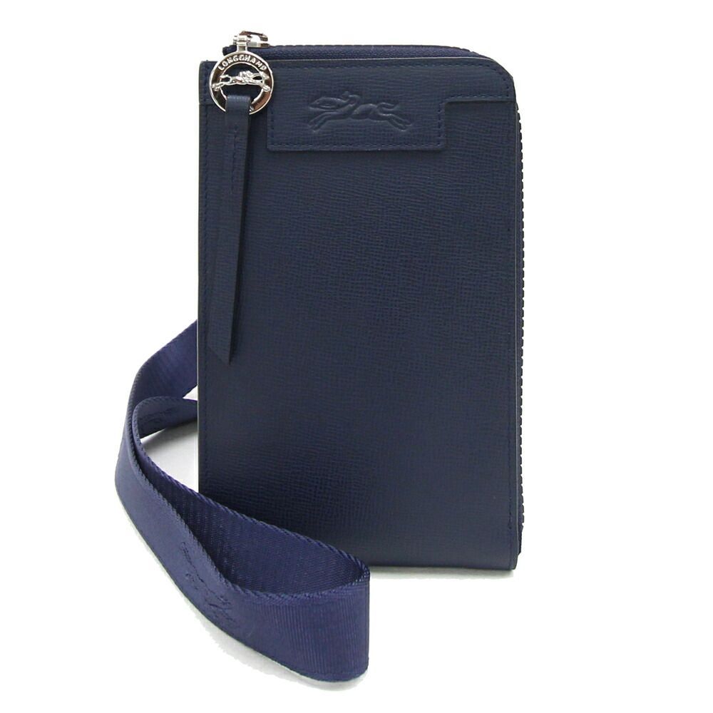 ロンシャンスマートフォンケースルプリアージュ34098ネイビーレザー新品L字ファスナーネックストラップスマホミニスモール首掛けLONGCHAMP