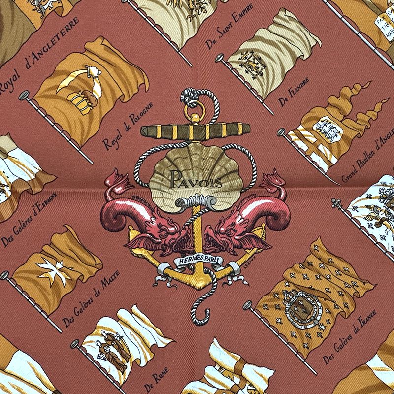 エルメス HERMES スカーフ カレ40 PAVOIS 船旗 レディース ブランド シルク ブラウン プチカレ