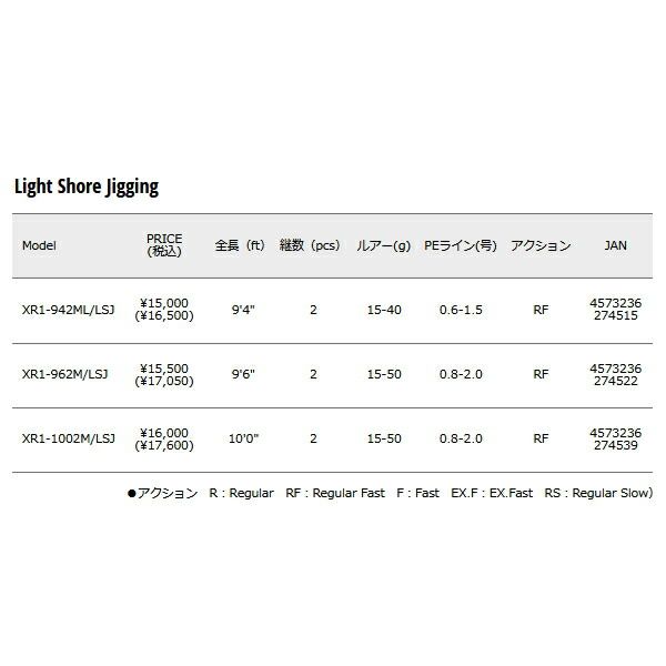 ライトショアジギング(LSJ)の定番的なモデルです。堤防やサーフでの20-50gのメタルジグやバイブレーションの操作性はピカイチ!ハイバランスな9ft6inセッティングですので、1日中ショアジギングを楽しめるでしょう。不意の大物とのファイトでも負けないバットパワーはもちろん、強烈な引きを吸収して魚を浮かせるトルクフルなブランクを併せ持つモデルです。