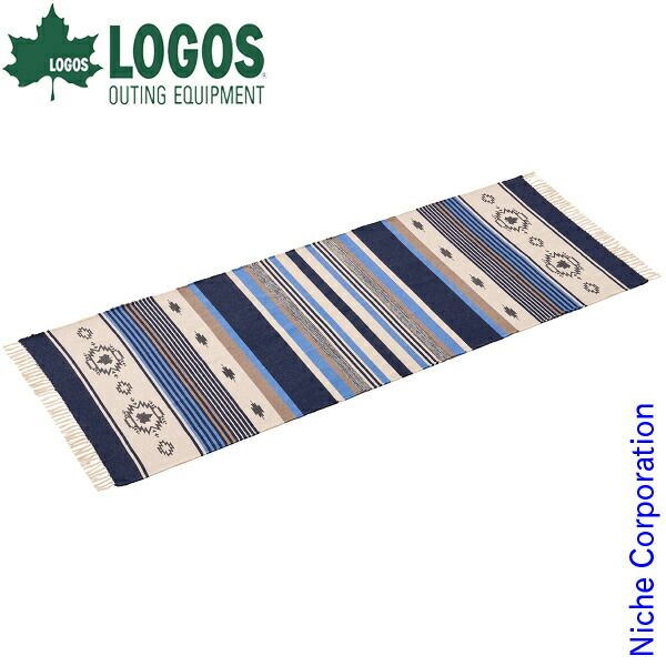 ロゴス コットンラグ240x90cm ブルー[71809757]