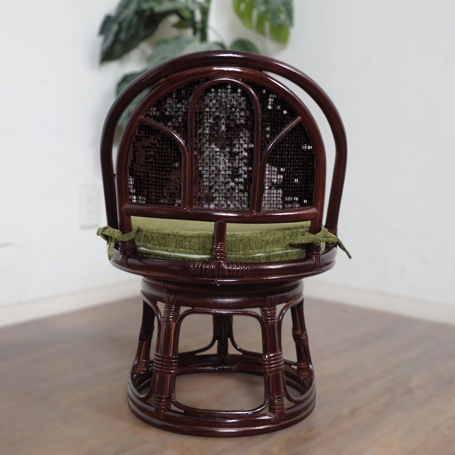 360度回転式のラタン座椅子。
