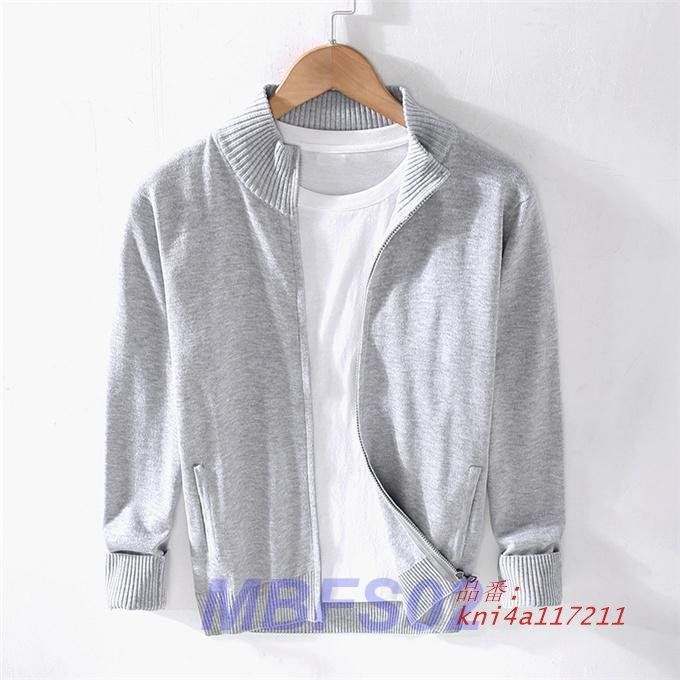 カーディガン メンズ トップス ニットカーディガン 無地 長袖 立ち襟 秋服 ファスナーコットン 前開き ビジネス アウター 事務 ユニセックス kni 4 a 117211