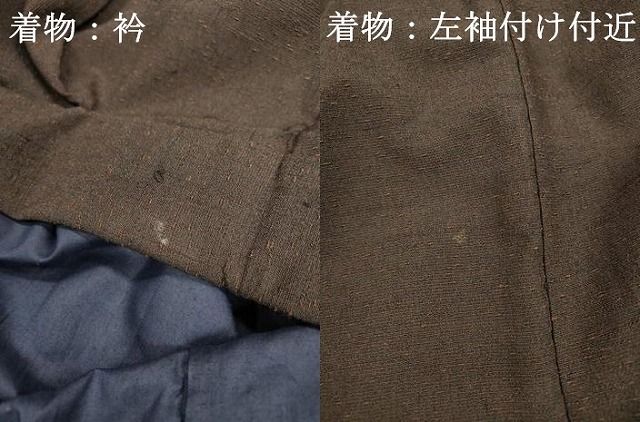 着物の状態は接写画像のように左袖付け付近・衿に薄い汚れがございますが
