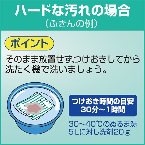 高活性酵素パワーで高い洗浄力を実現!魚・肉の血液などのタンパク汚れや、油・調味料汚れまで優れた洗浄力でパワフルに洗い上げます。ニオイの原因となる皮脂汚れもしっかり落とします。洗浄後、強い香りが残らない微香タイプです。<粉末>