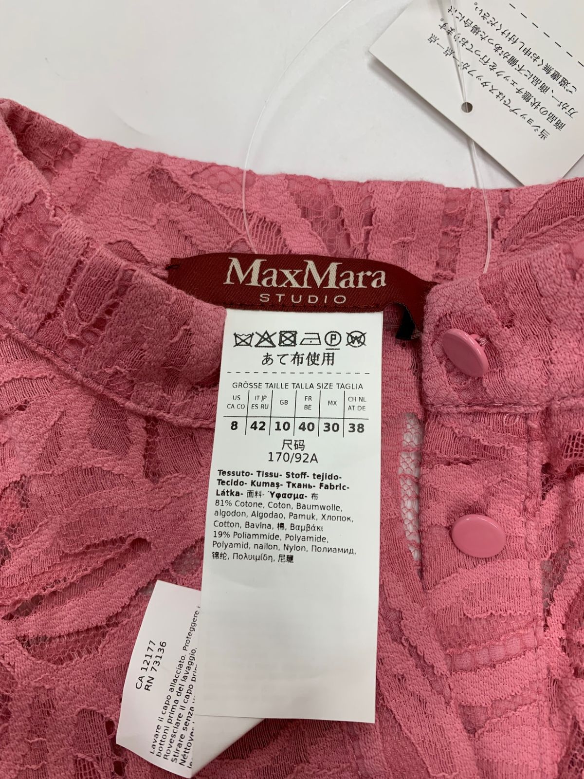 マックスマーラステュディオ ワンピース 42 ピンク レース調 フロントボタン