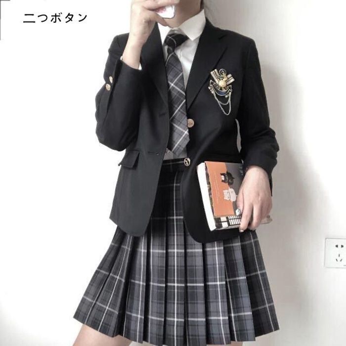 【品番】 メイン素材: ポリエステル 【カラー】二つボタン、三つボタン 【サイズ】:S/M/L/XL/2XL 【セット内容】:ブレザー+長袖シャツ+スカート+ネクタイ+バッジ 【ご用途】:日常着や学校制服としてはもちろん、クリスマスイブや、忘年会、宴会、パーティーの場合にご利用可能です。
