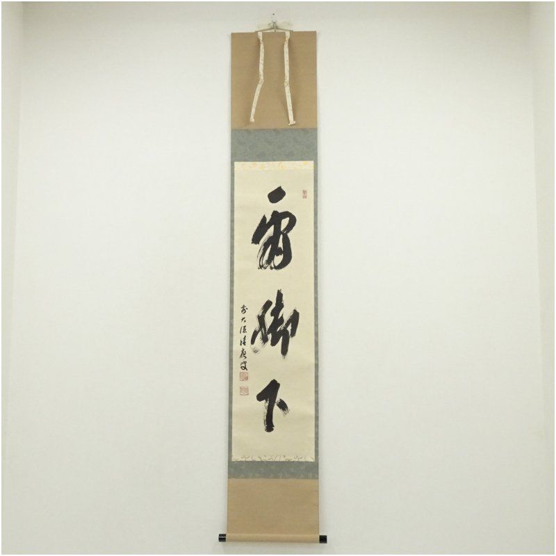前大徳 福本積應筆 看脚下 一行書 肉筆紙本掛軸 共箱 掛け軸 床の間 書 おしゃれ 絵画 表具 芸術 茶道 年中掛け インテリア 茶掛 掛物 和室