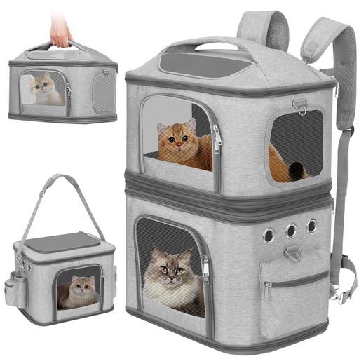 HOVONO猫2匹キャリーリュック2段式分離可小型犬ペットネコのリュックペットバッグ特大通気性旅行 通院 交通機関 災害避難用