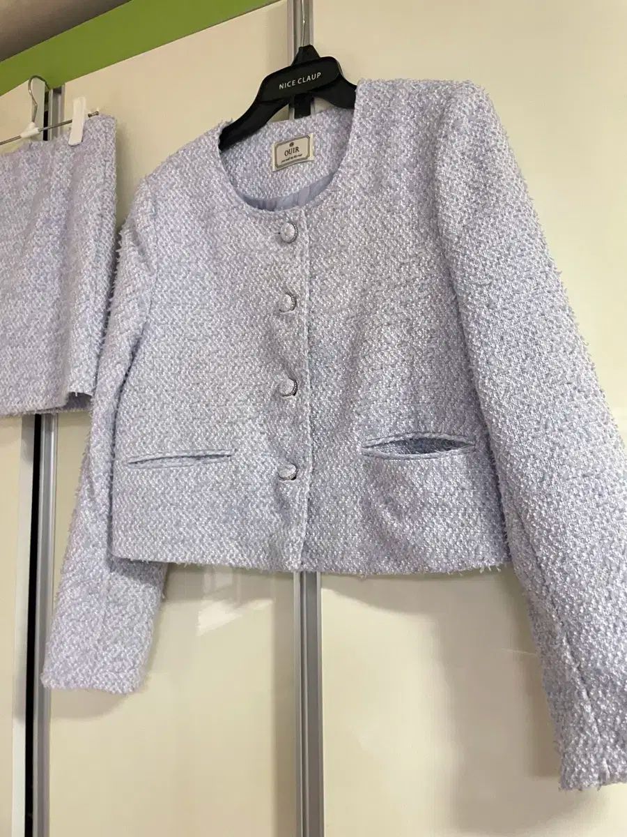 これはツイードモーブのセットアップです