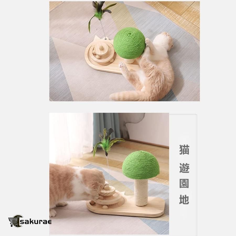 ..【絶妙なデザイン】:キノコ型の猫のおもちゃのターンテーブルは猫の頭の形で設計されており、スクラッチポストはキノコの形で設計されています猫のターンテーブルの各層には2つの木製のボールがあり、回転させて猫の注意を引ことができますこれは非常にプレイしやす、インタラクティブです