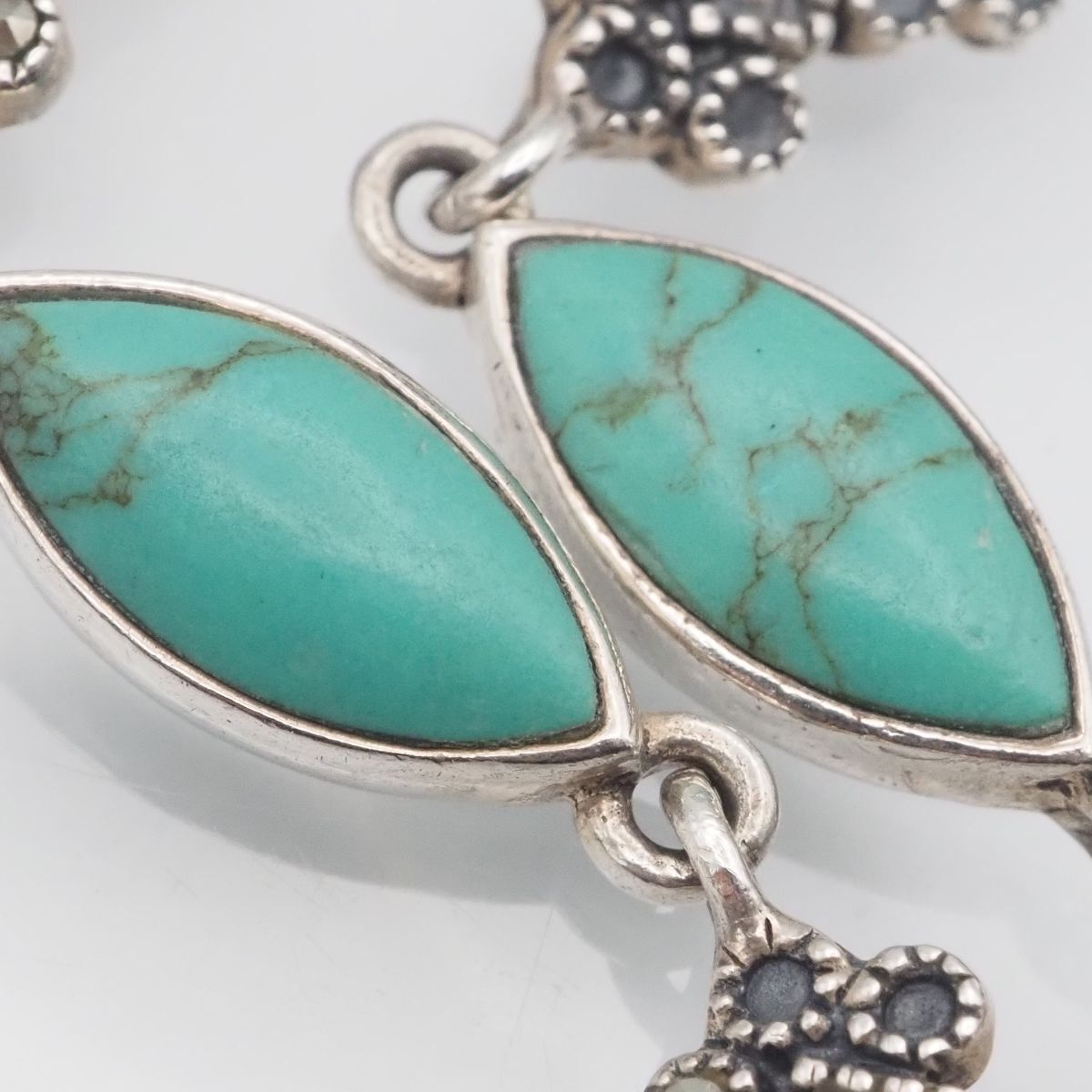 H 695 ターコイズ トルコ石 マーカサイト マルカジット 925刻印 ブレスレット デザイン シルバー ヴィンテージ 誕生石