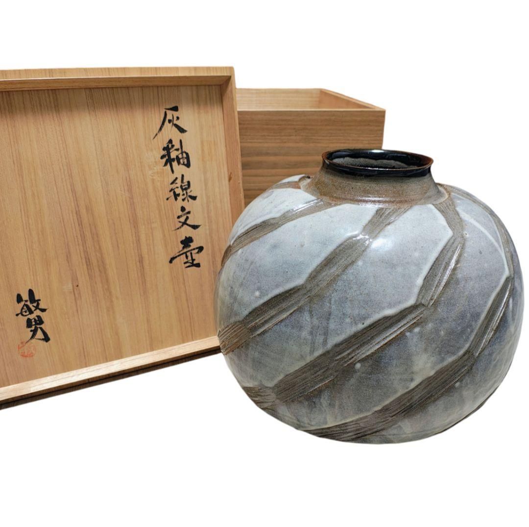 10 OFF 日本工芸会正会員 武田敏男氏 作品 灰柚線文壺 花瓶 置物 30 cm