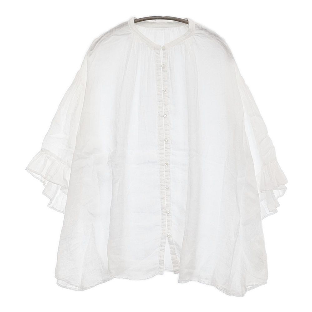 nest Robe リネンガーゼギャザースリーブブラウス 定価27500円 01242-1521 シャツ 24 SS ホワイト レディース ネストローブ 5-0902 M