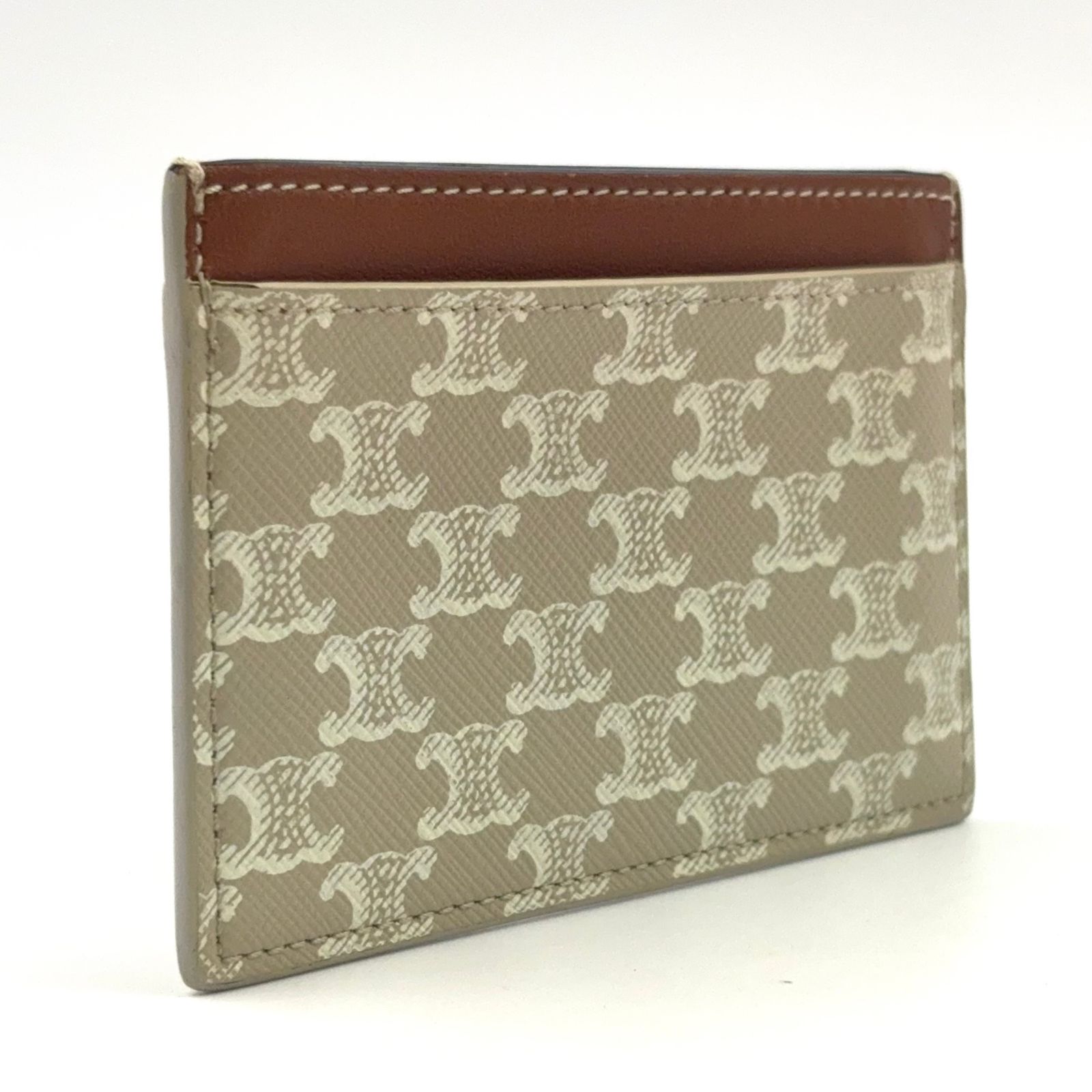 CELINE トリオンフ ロゴ パスケース レザー ブラウン×ベージュ×ホワイト カードケース