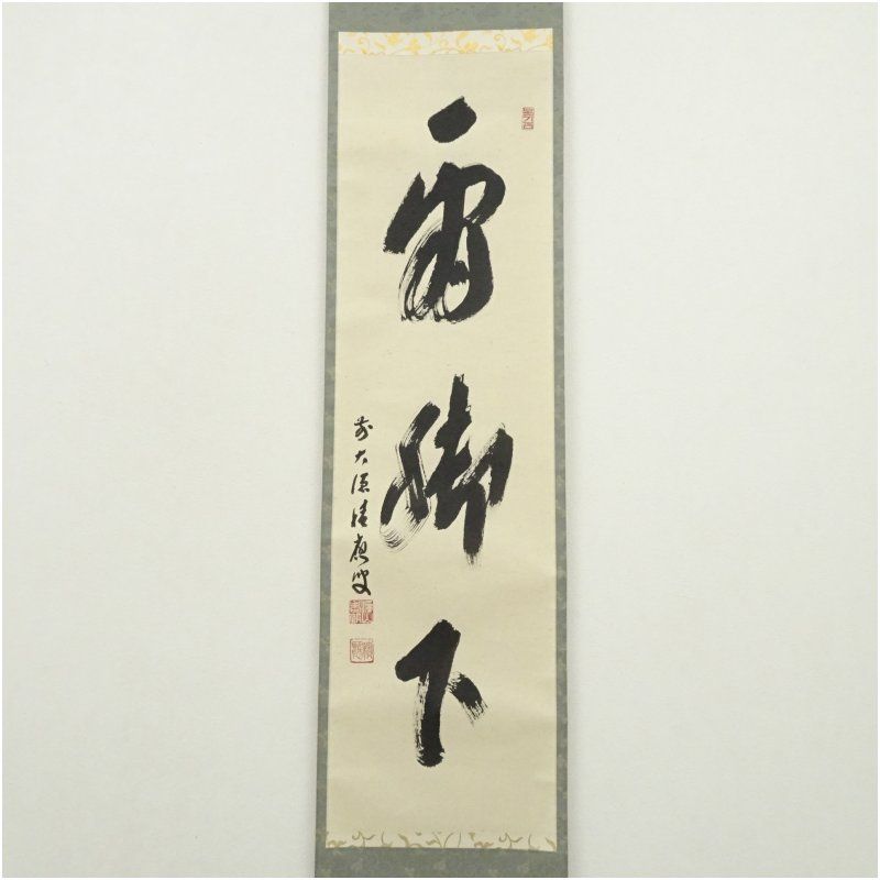 前大徳 福本積應筆 看脚下 一行書 肉筆紙本掛軸 共箱 掛け軸 床の間 書 おしゃれ 絵画 表具 芸術 茶道 年中掛け インテリア 茶掛 掛物 和室