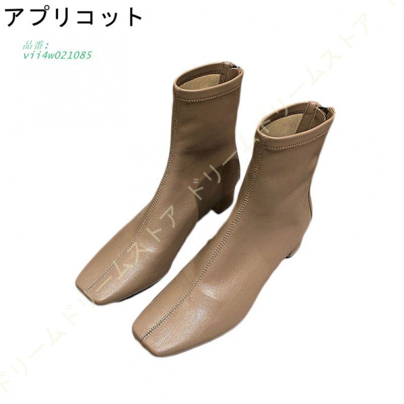 スクエアトゥストレッチショートブーツ チャンキーヒール 4 CM レディース ストレッチ ショートブーツ ソフトタッチ 秋 冬 春 美脚 スクエアトゥショートブーツ vii w 021085