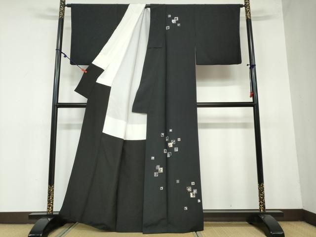 平和屋着物 訪問着 箔散らし草花文 黒地 金彩 正絹 ud