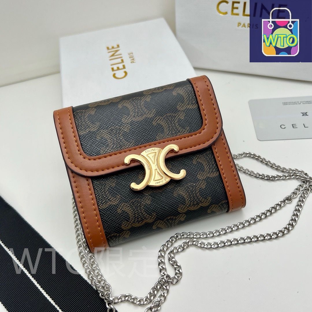 Celine トリオンフ チェーンウォレット 10999 本革&チェーン付き ブラックプリントデザイン -WT 0輸入