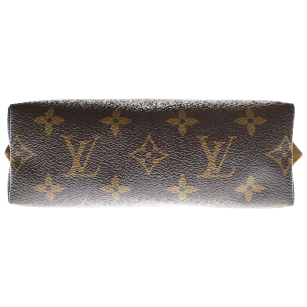 LOUIS VUITTON ルイヴィトン モノグラム ポシェットコスメティック メイクポーチ ケース 収納 ブラウン ゴールド金具 レザー×PVC M 47515