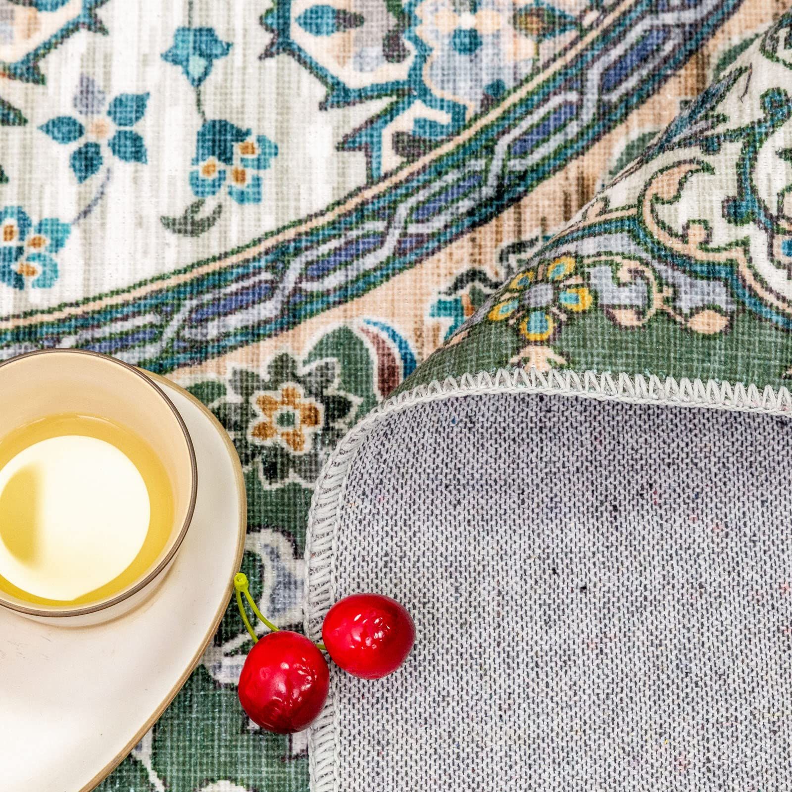 ペルシャ 絨毯風 3畳 ラグ マット 洗える 花柄 カーペット オールシーズン 軽量 滑り止め 防ダニ DECOMALL 防臭 グリーン 緑 床暖房対応