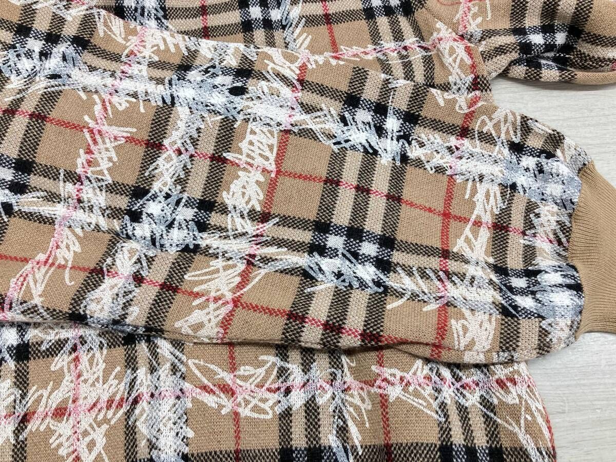 冬 BURBERRY バーバリー Scribble Check Merino Wool Sweater メリノウールニットセーター クールネック ニットプルオーバー XL ベージュ