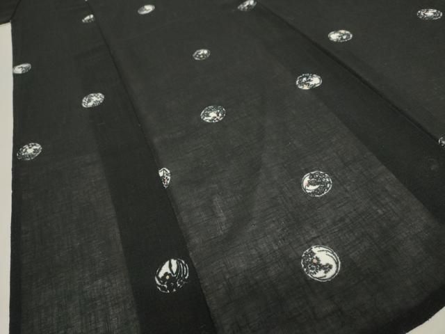平和屋着物 夏物 小紋 紗 花丸文 黒地 洗える着物 st