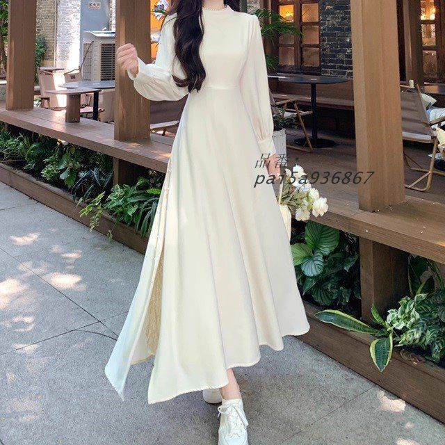 ロングワンピース 長袖 ワンピース レディース 秋 フ 黒 きれいめ pai 5 a 936867