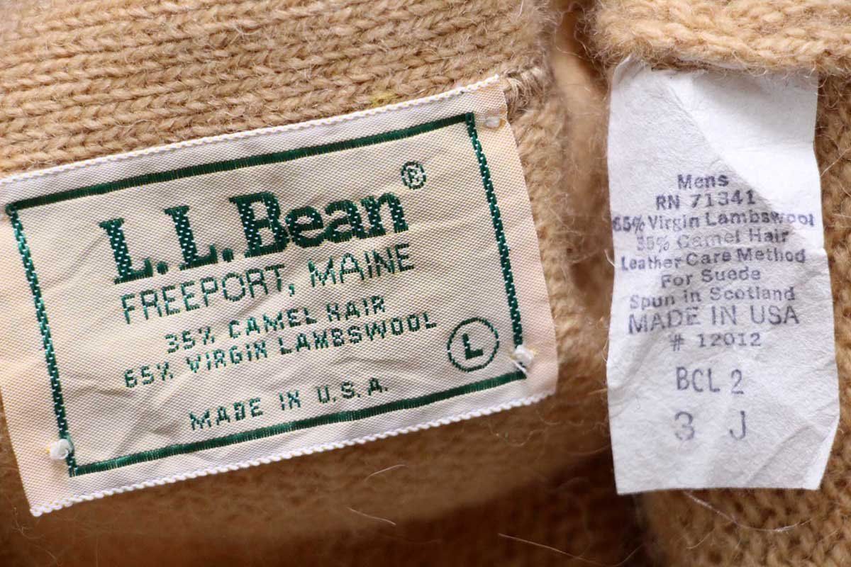 80 s L.L.Bean パチポケ-エルボーパッチ サドルショルダー キャメルヘア×ラムウールニット カーディガン L ビンテージ アウトドア