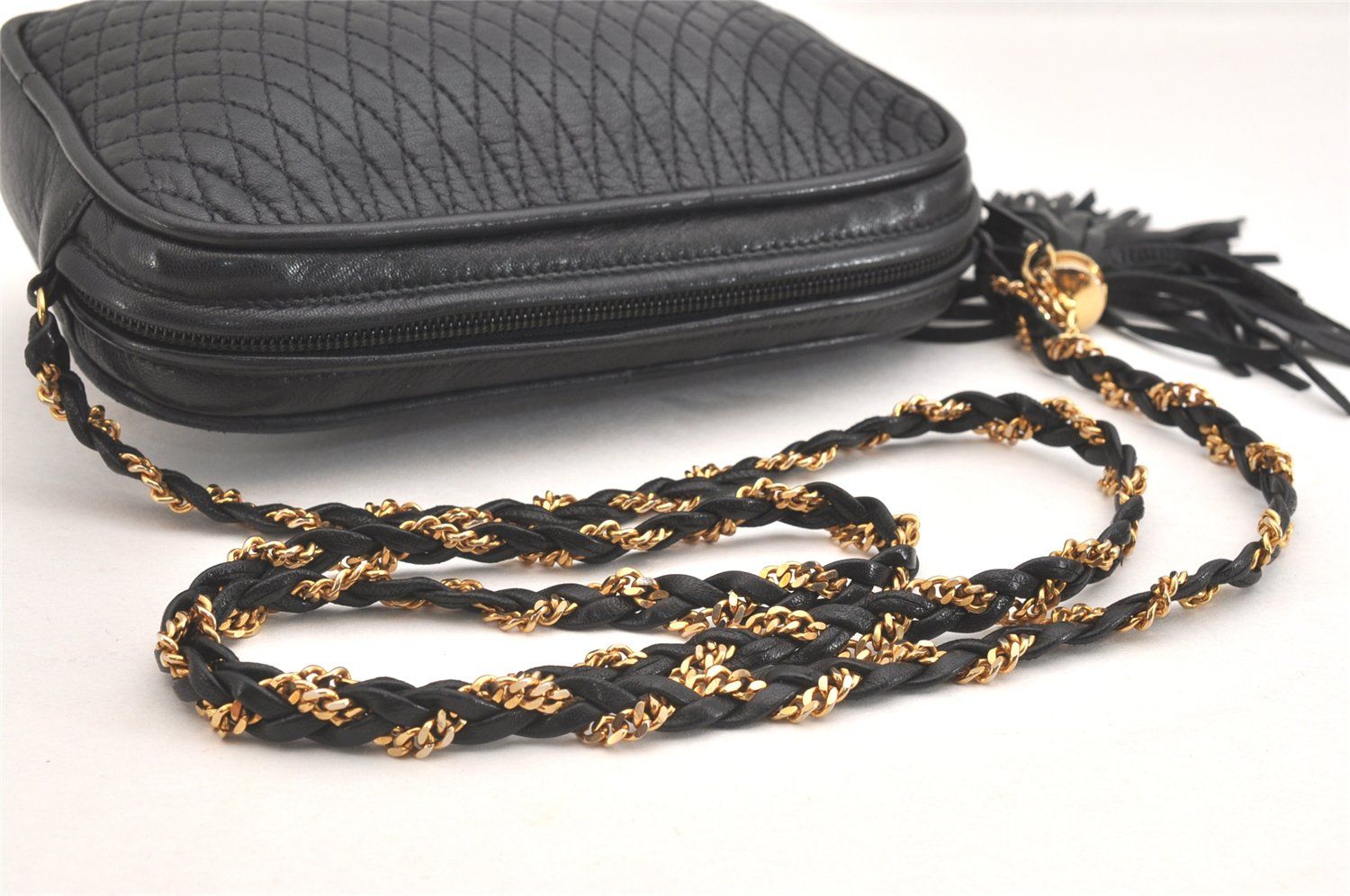 BALLY バリー ヴィンテージ キルティング レザー チェーン ショルダーバッグ 財布 ブラック 2489 N