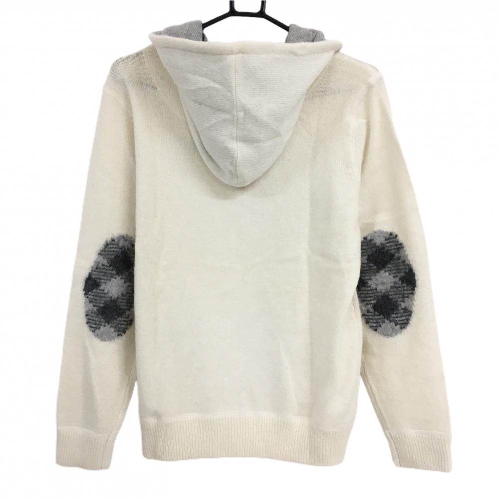 マスターバニー フード付セーター 白×グレー ロゴネイビー アンゴラ混 ニット メンズ 4 M ゴルフウェア MASTER BUNNY EDITION