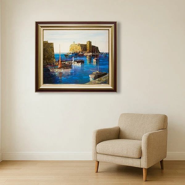 美しい色彩と湾の情景が、空間に豊かな存在感をもたらす作品です。