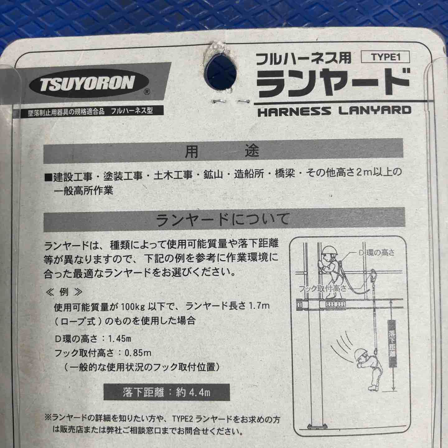 ツヨロン 新規格 墜落制止用器具 2ノビロンランヤード THL-2-NV 93 SV-21 KS-2 R 23-BP