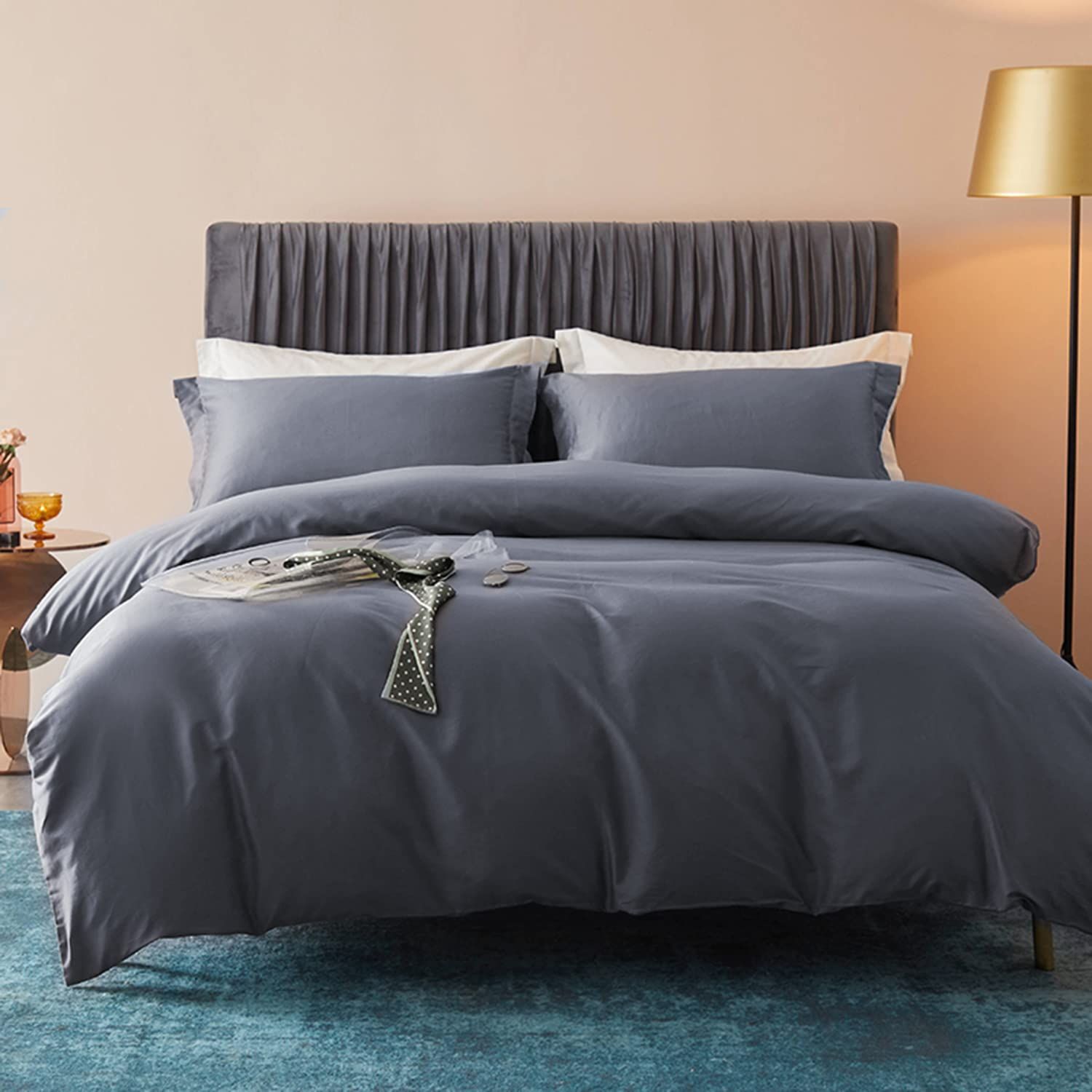【寝具カバーセット セミダブル グレー】枕カバー(2点入り):約43 x 63cm丨掛け布団カバー:約170 x 210cm丨ボックスシーツ:約120 x 200cm+30cm(マットの厚み10~30cm程度に対応)