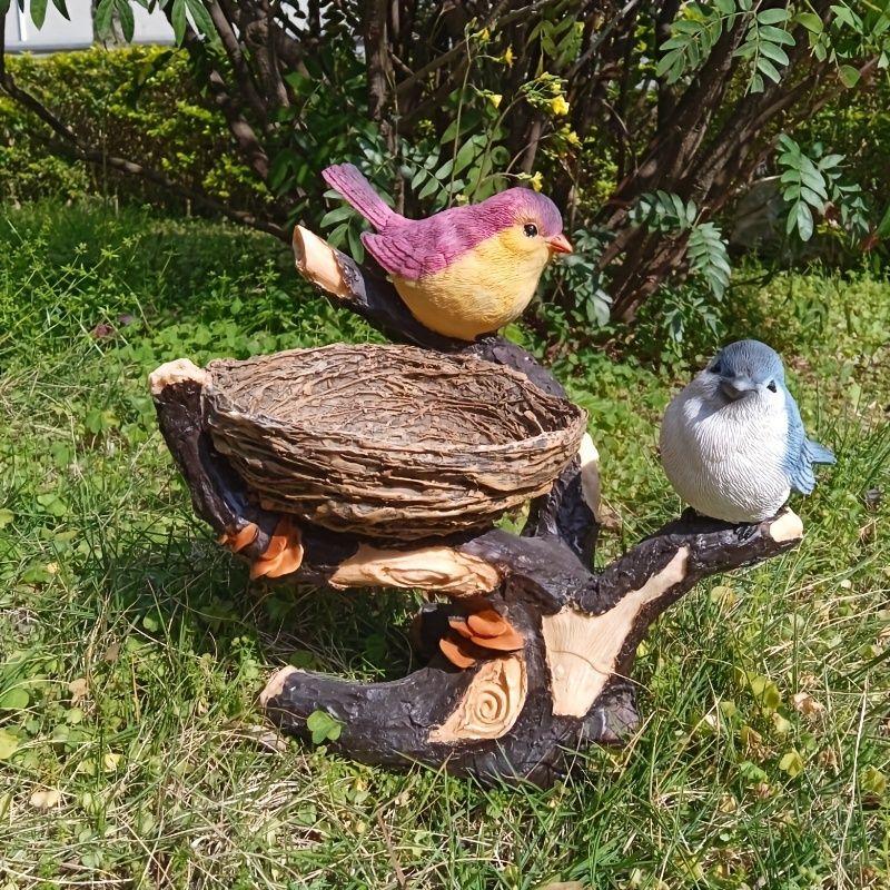 バードフィーダー 小鳥 野鳥 用 給餌器 餌箱 餌台えさ置き 置物 鳥の巣と小鳥達 餌入れ 鳥 ガーデンオブジェ インテリア ガーデニング ペット食器 野鳥観察 バード用品 インテリア雑貨 樹脂