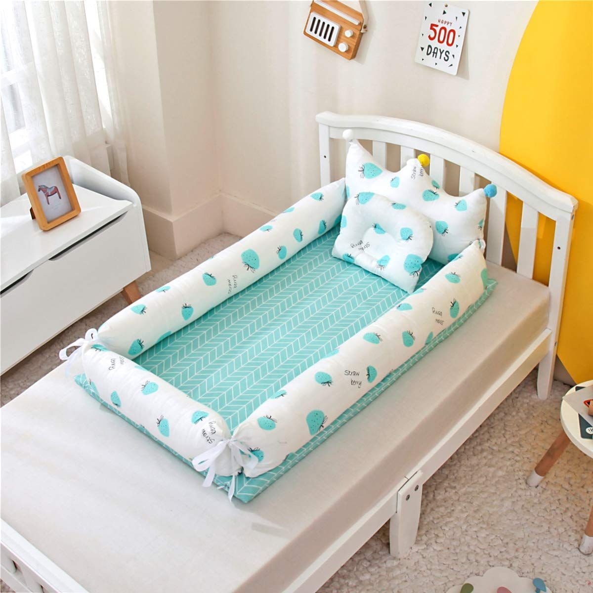 数量 95 55 35 cm イチゴ-グリーン 0-36ヶ月 通気性洗濯 出産祝い ポータブル 添い寝 ベビーベッド ベッドインベッド 枕付き シーツ付き 新生児 Luddy