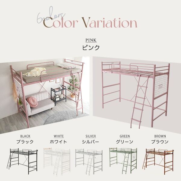 説明大人かわいいインテリア宮・コンセント付きロフトベッド!空間を有効活用できるロフトベッドでハイタイプ・ミドルタイプに高さ調整可能です!ハシゴは左右どちらでも設置OKです。耐荷重120kgの安心・安全設計です!2口コンセント宮棚付きなので携帯、ライトを枕元に置くことができます。衣類を掛けれるパイプハンガーと小物を引っかけられるスチールネットは収納として大活躍です。サイドフレームは高さ27cmあるので布団のズレや寝返りをしても安心です。