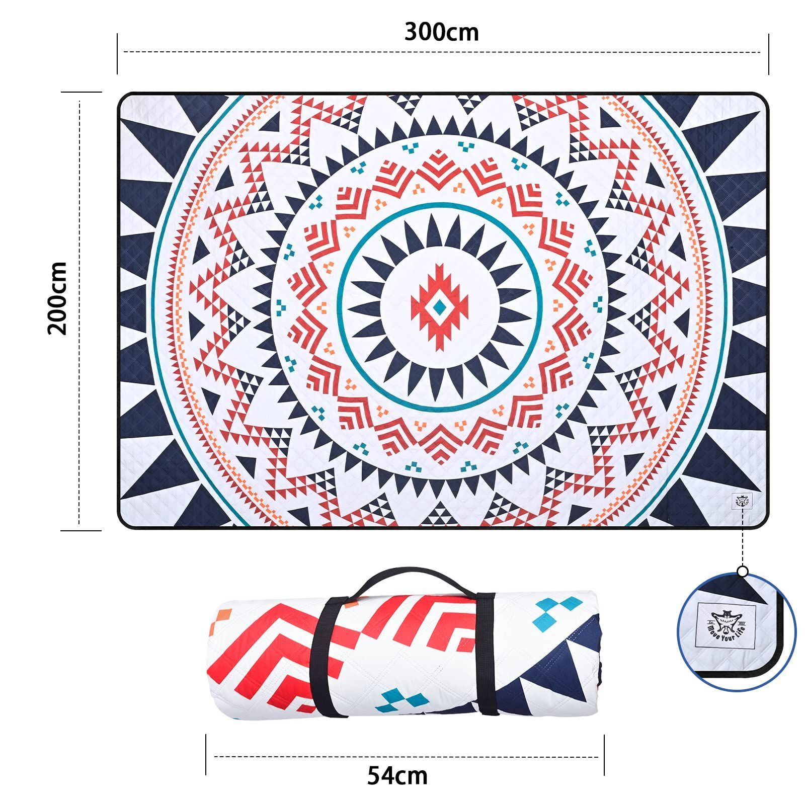 Move Your Life オリジナル アウトドアシート 200cm×300cm 4~8人用 大判 厚手 洗濯機洗い可 運動会 折り畳み 収納ベルト 防水 断熱 コンパクト アルミ蒸着加工 おしゃれ テント用 車中泊用 防災 断冷効果 レジャーシート キャンプシート Native Shine ネイティブ シャイン
