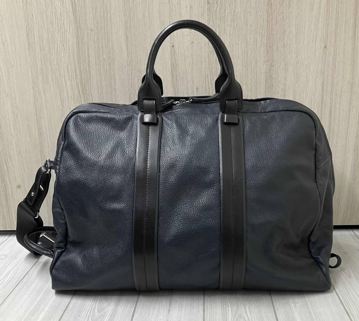 ガレリアント 2 WAY レザーボストンバッグ ネイビー