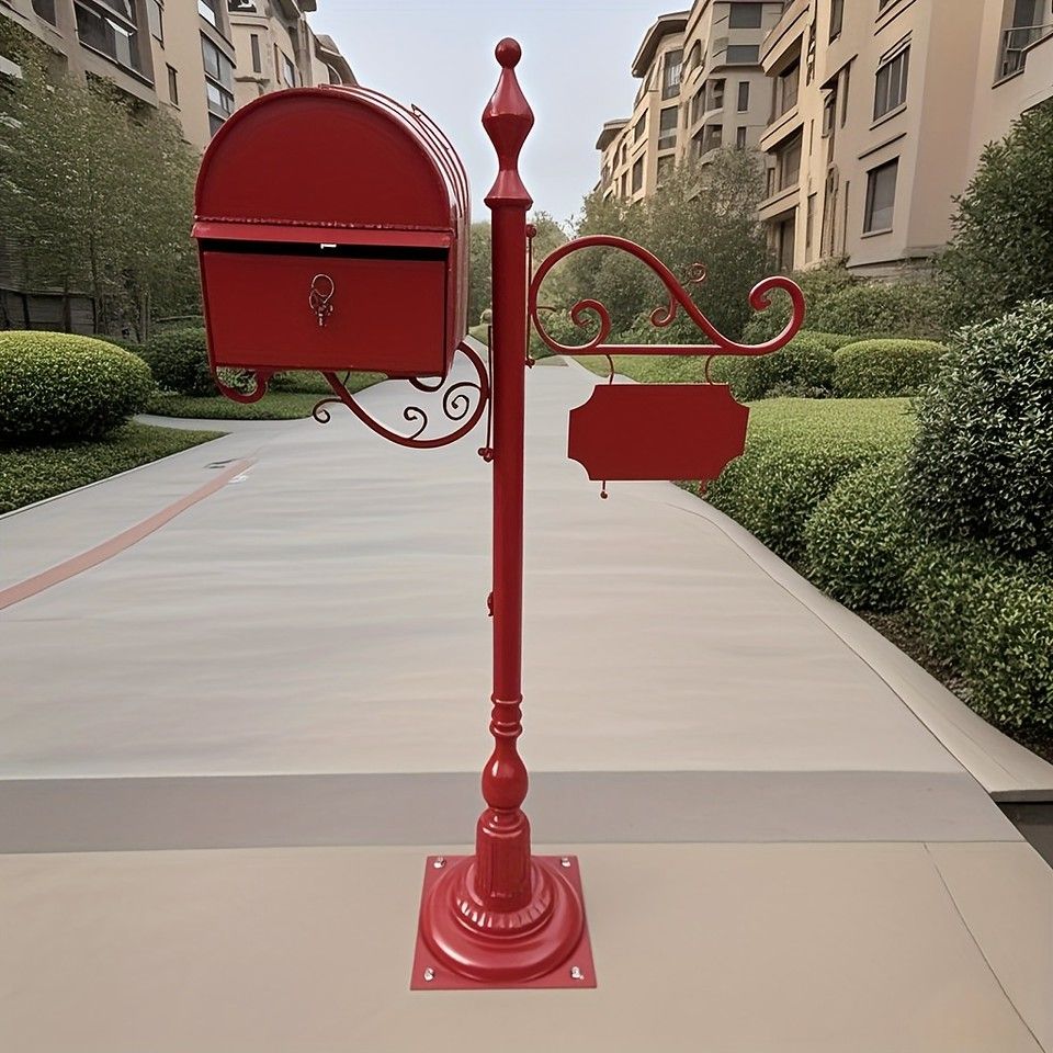 レトロなデザインが魅力的な、鋳鉄製の自立式メールボックスです。