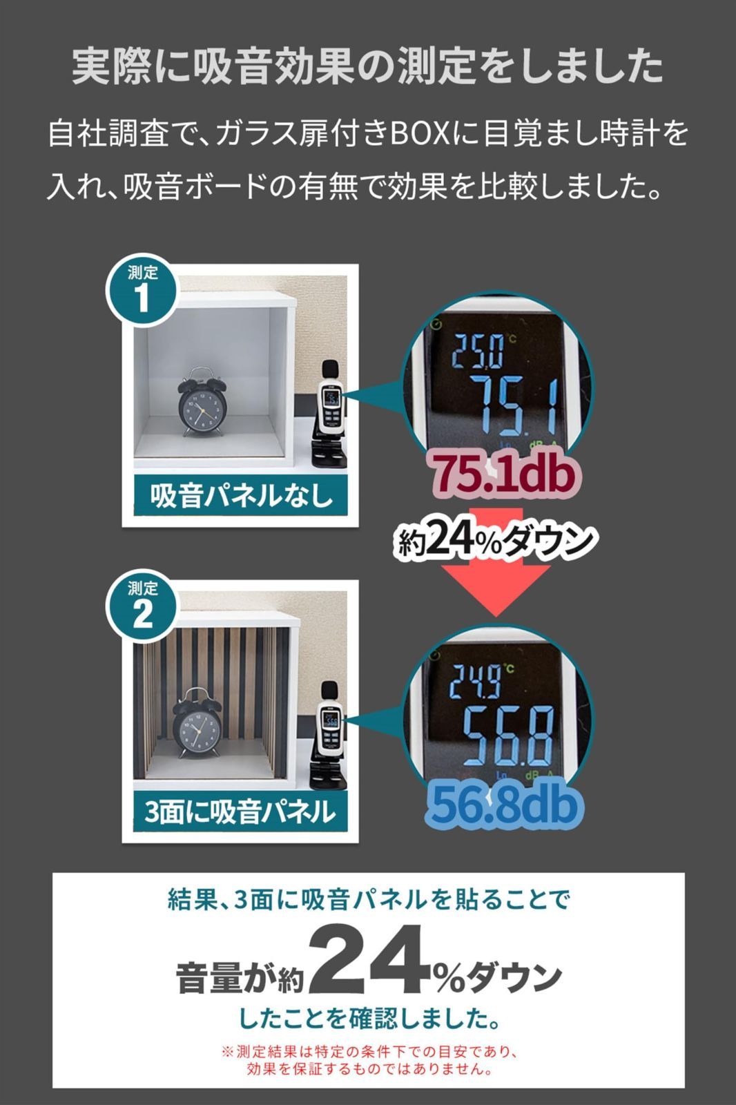 【無数の小さな穴で音を吸収】高密度ポリエステルの吸音材部分に多数ある小さな気泡に音が入り込む事で、音の振動エネルギーが内部で跳ね返り減衰させ、音を吸収し音漏れを軽減します。【手軽に設置、賃貸のお部屋でも】壁に取り付けるだけで防音対策ができます。賃貸物件では、剥がせる両面テープと付属のピンを使用、しっかりと固定したい場合は接着剤や両面テープの併用も可能です。