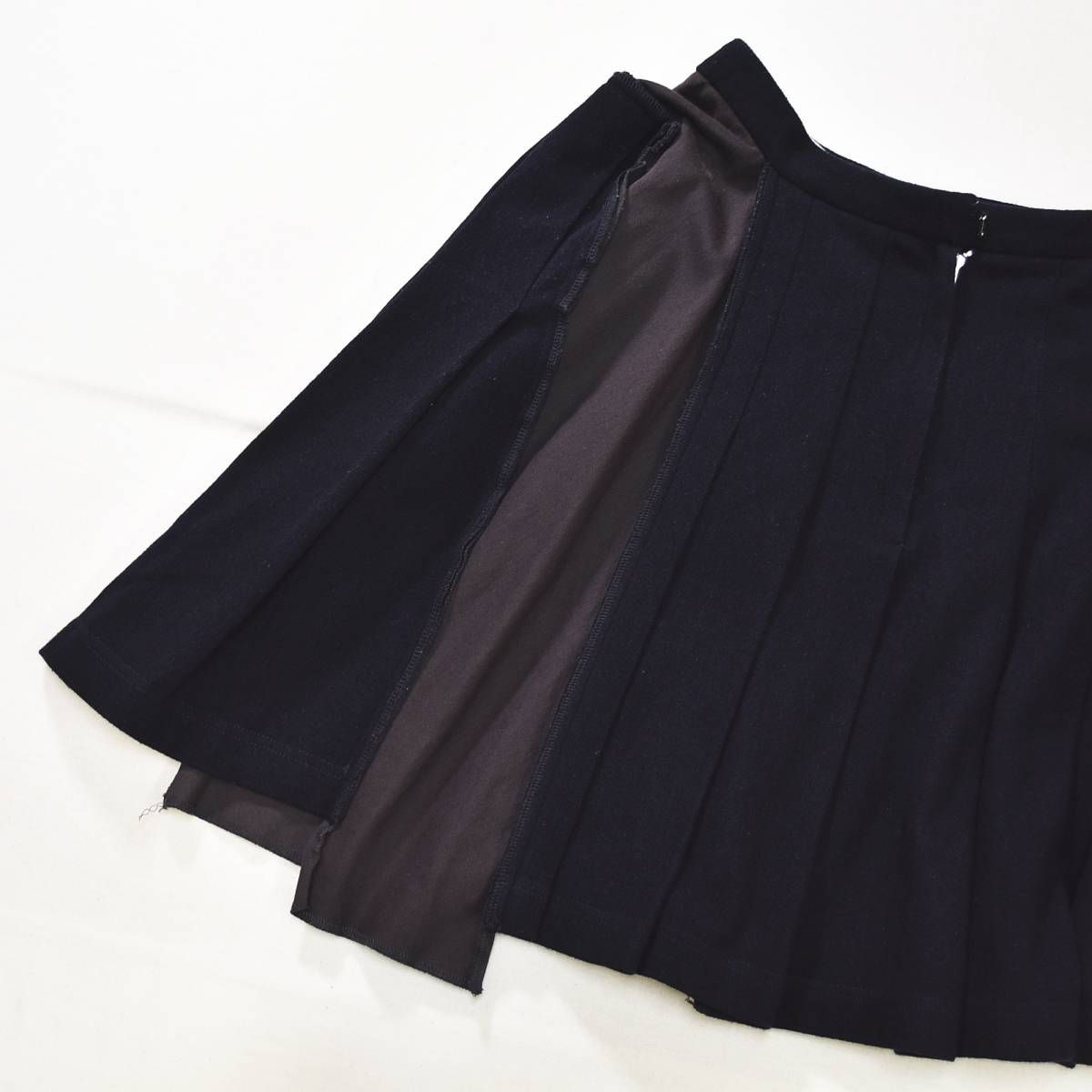 ルーマニア製 エイチアンドエム x コムデギャルソン H&M COMME des GARCONS 膝丈 ウール プリーツ スカート アシンメトリー 立体裁断 165 68 A ネイビー モード デザイナーズ レディース