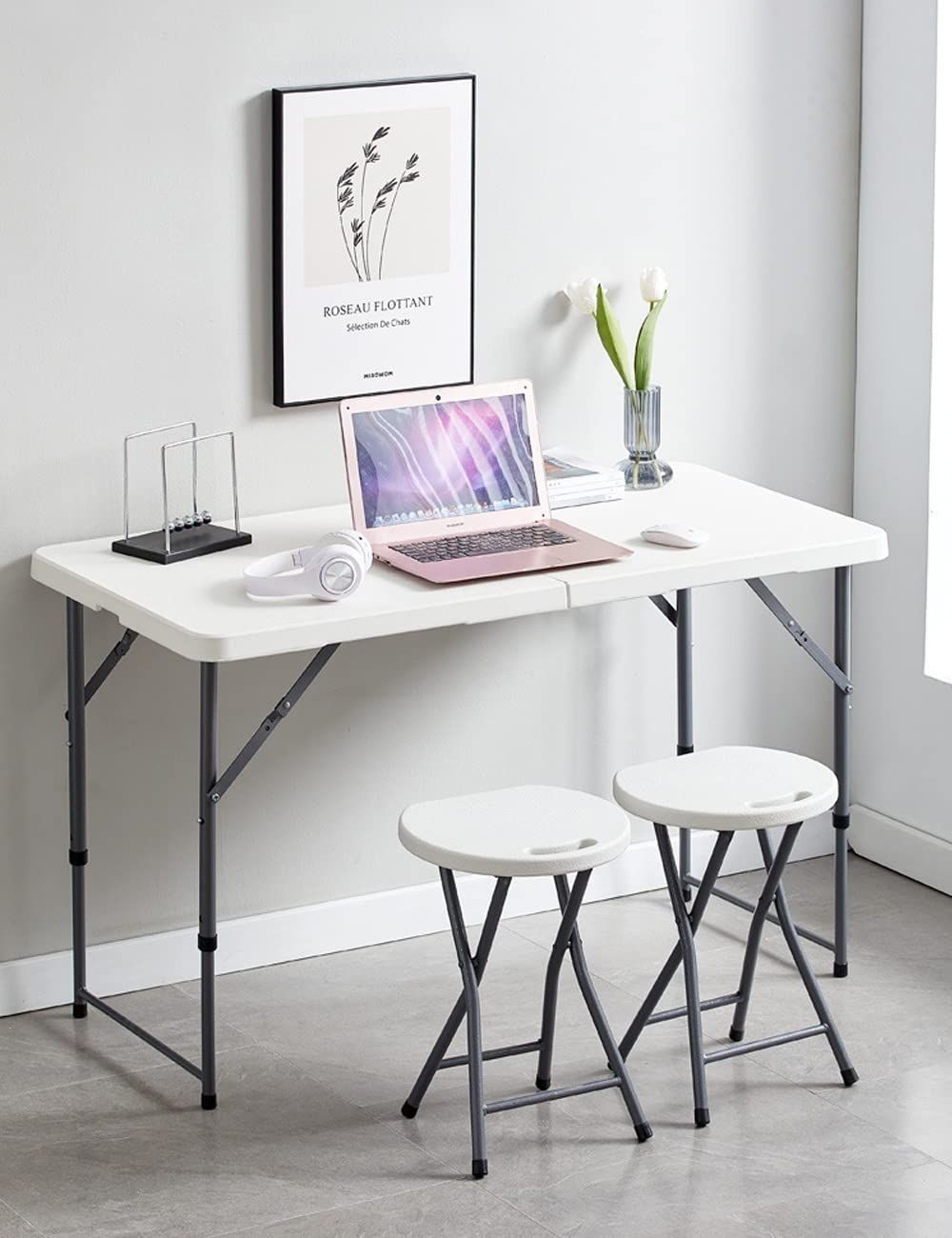 【丈夫な卓上設計】天板は強化プラスチック(HDPE)で作られました、強度と耐久性が高いです。丈夫なプラスチック製の卓上には、掃除が簡単な表面があり、食べ物、飲み物、その他のさまざまなアイテムを保持できます。