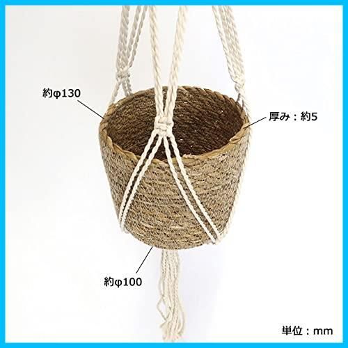 マクラメ編プラントハンガーとセットの ハンギングポット Cタイプ 直径13.5×高さ82cm コットンロープをマクラメ編で編み上げ 天然素材シーグラスのポット お部屋のインテリアにマッチした観葉植物をハンギング エンヴェールヘルック