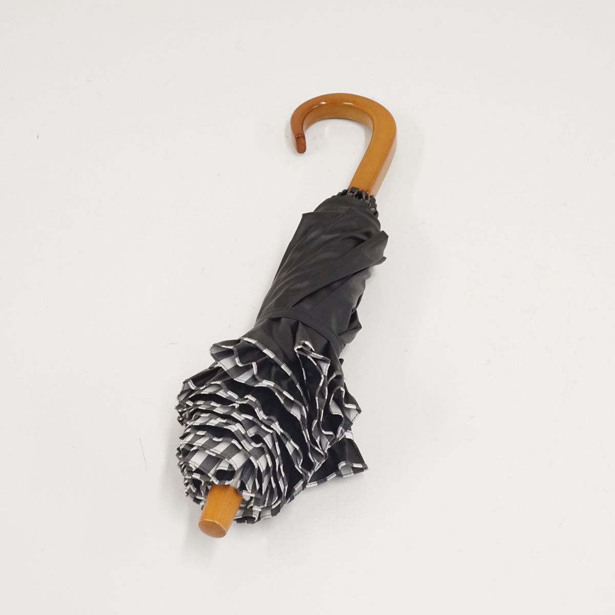 また、2段折タイプは畳みやすいだけでなく、伸ばしたまま長傘のようにまとめることも出来るので、使いやすく人気です♪