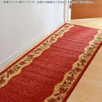 クラシカルな花柄が上品な空間をもたらします。廊下敷きとしても、キッチンマットとしてもご使用頂けます。表地には丈夫で汚れにくいナイロンを使用しているため耐久性にも優れた商品です。